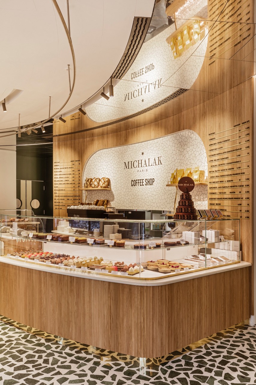 The enamel used for this project was chosen for its luminous, contemporary effect, which blends harmoniously with the gourmet world of Maison Michalak. An elegant and durable material that meets the aesthetic and technical requirements of this elaborate project.